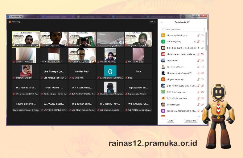 kegiatan yang dilaksanakan pada Sabtu, (6/8/2023) dihadiri oleh peserta yang berasal dari Pimpinan Kontingen Daerah, Pimpinan Kontingen Cabang dan peserta Jurnalis Raimuna Nasional XII tahun 2023. Meskipun disenggarakan secara daring, kegiatan berjalan dengan lancar dan hikmat.